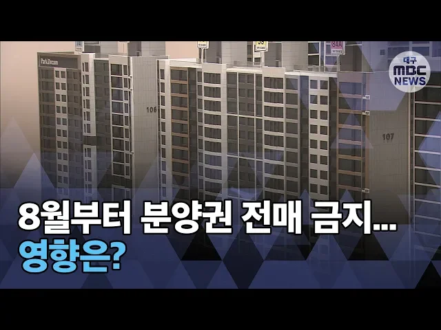 ◀ANC▶정부가 오는 8월부터 수도권과 대구를 포함한 광역시의 아파트 분양권 전매를 사실상 금지했습니다.이렇게 되면 투기 수요가 몰린 분양 시장도 큰 영향을 받을 전망입니다.한태연 기자가 보도합니다. ◀END▶ ◀VCR▶대구의 한 주택업체가 지난 3월 대구 남구에 분양한 아파트 견본주택입니다.평균 29대 1의 경...