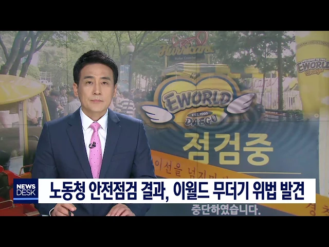 ◀ANC▶ 최근 끔찍한 안전사고가 난 이월드에 대해 노동청이 안전점검을 했는데 법을 어긴 사례가 무더기로 적발됐습니다. 이번 사고도 이월드의 안전 불감증에서 비롯됐다는 것이 노동청의 판단입니다. 한태연 기자가 보도합니다. ◀END▶ ◀VCR▶ 지난 16일 20대 아르바이트생 다리 절단 사고가 발생한 이월드는 한마...