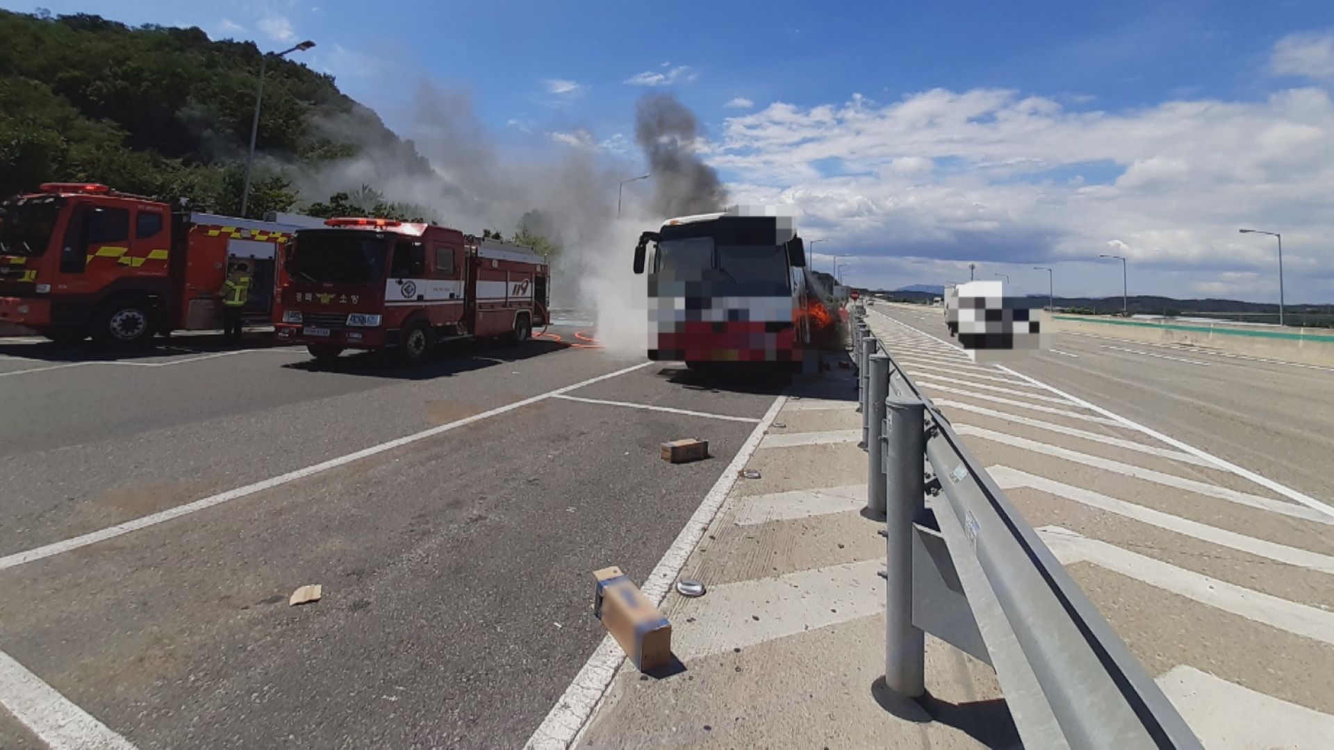 경부고속도로서 달리던 고속버스에 불···5천여만 원 피해
