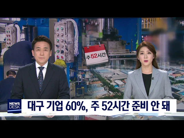 ◀ANC▶ 내년부터 50인 이상 300인 미만 기업도 '주 52시간 근무제'를 해야 하는데, 준비가 안된 경제계는 걱정이 앞섭니다. 여] 대구에서는 절반 이상 기업이 제대로 준비하지 않고 있고, 80%는 새로 사람 뽑을 생각도 하지 않고 있습니다. 한태연 기자가 보도합니다. ◀END▶ ◀VCR▶ 직원 70여 명인 이 회사는 '주 52...