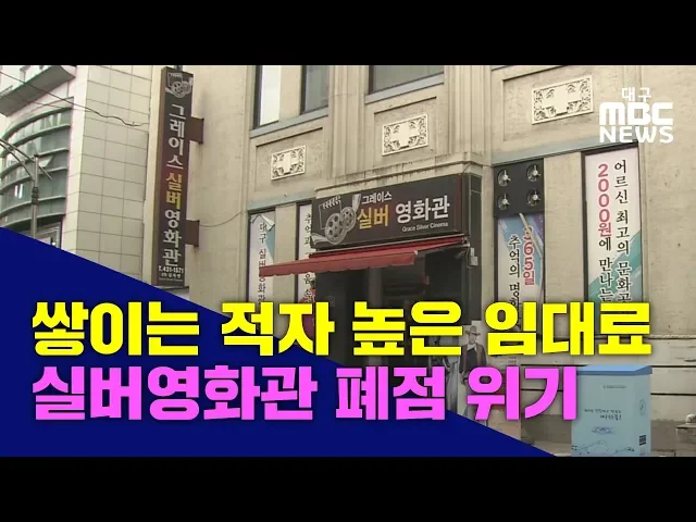 ◀ANC▶ 이번에는 대구 유일의 실버 영화관 소식입니다. 55살 이상이면 2천 원을 내고 추억의 영화 한 편을 볼 수 있는데요. 계속 되는 적자와 높은 임대료 때문에 문을 닫을 처지입니다. 이어서 한태연 기자가 보도합니다. ◀END▶ ◀VCR▶ 5년 전 대구시 중구 포정동에 문을 연 실버 영화관입니다. 영화 시작 시각이 ...