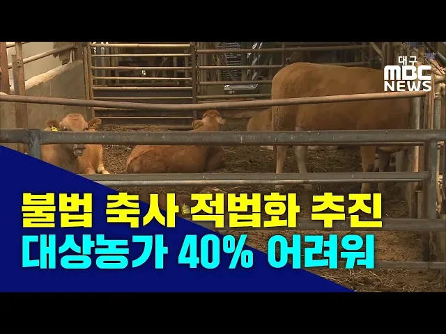 ◀ANC▶ 농촌의 큰 문젯거리 가운데 하나가 불법 축사입니다. 그래서 정부가 오는 9월까지 시한을 정해 무허가 축사를 적법화하는 사업을 추진하고 있는데요. 하지만 9월 이후에도 40% 정도는 무허가로 남을 것으로 보입니다. 한태연 기자가 보도합니다. ◀END▶ ◀VCR▶ 17년째 한우를 키우는 김규식 씨는 최근 완성한 ...