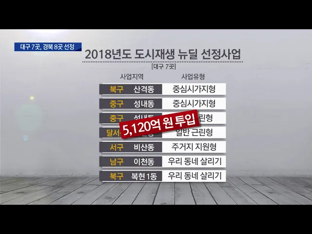 R]도시재생 뉴딜사업, 대구 7곳, 경북 8곳 선정