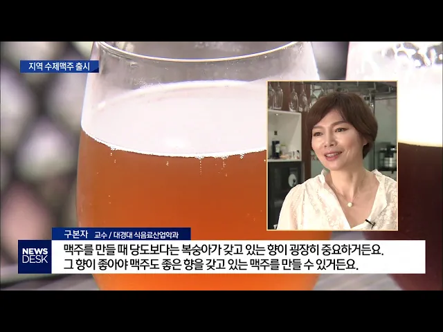 ◀ANC▶ 다양한 맛과 향을 자랑하는 수제 맥주를 찾는 사람들 많습니다. 이런 가운데 지역 농산물을 활용한 수제 맥주가 잇달아 출시될 예정이어서 애호가들의 관심을 끌고 있습니다. 한태연 기자가 보도합니다. ◀END▶ ◀VCR▶ 한 달 가까이 발효와 여과 공정을 거친 맥주가 유리잔에 담깁니다. 청도 특산물 복숭아즙...