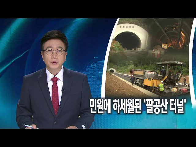 ◀ANC▶ 경상북도가 추진중인 칠곡 동명에서 군위 부계를 잇는 팔공산터널 공사가 착공 10년이 되도록 완공되지 않고 있습니다. 공사비는 당초보다 30% 늘어났고 민원도 늘어 올해 말 준공 목표도 장담할 수 없는 상황입니다. 한태연기자가 보도합니다. ◀END▶ ◀VCR▶ 칠곡 동명에서 군위 부계를 잇는 14.2킬로미터 지...