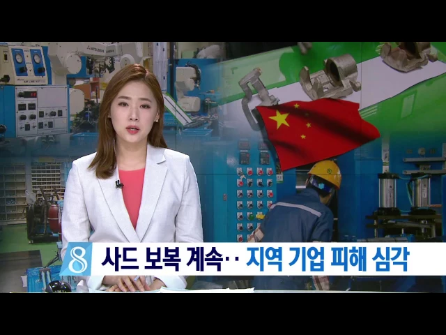 ◀ANC▶ 사드보복으로 중국에 진출한 지역 수출기업들의 피해도 갈수록 커지고 있습니다. 특히, 자동차부품과 소비재 등 지역 주요 업종에 타격이 클 것으로 우려되고 있습니다. 이 때문에 대구와 경북 일부지역을 산업위기대응 특별지역으로 지정해야 한다는 목소리도 나오고 있습니다. 한태연기자가 보도합니다. ◀END...
