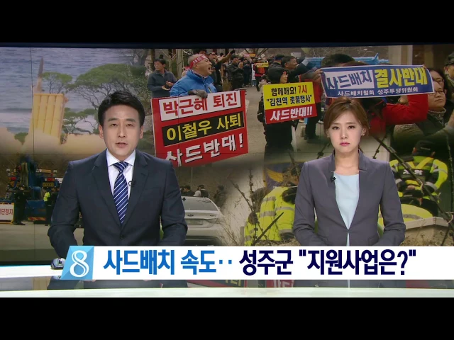 성주투쟁위원회 등 사드배치 반대 단체들은 사드가 한국에 도착했다는 소식에 당혹감을 감추지 못하면서 대응하는 방안을 찾고 있습니다. 김천시민대책위원회는 내일 저녁 7시 김천역 평화광장에서 사드배치반대 김천촛불집회 200회 대동제를 열기로 했습니다. 한편,성주군은 성주골프장과 관련해 군사시설 보호구역 지정을...