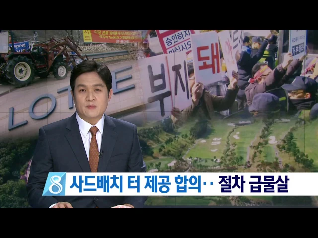 ◀ANC▶ 앞서 관련 보도가 있었습니다만, 롯데가 성주골프장을 사드 배치 터로 제공하기로 함에 따라 사드 배치 절차가 급속도로 진행될 것으로 보입니다. 사드배치를 반대하는 지역주민들은 강하게 반발했습니다. 권윤수 기자가 보도합니다. ◀END▶ ◀VCR▶ 롯데상사는 오늘(어제) 이사회를 열고 사드배치 장소인 성주...