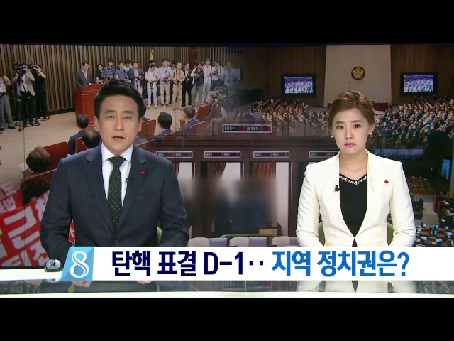 ◀ANC▶ 앞서 보신대로 내일 국회에서 박근혜 대통령 탄핵 표결이 실시됩니다. 성난 민심이 계속 확산되는 상황에서 가결 가능성이 큰 것으로 분석되고 있습니다. 여] 부결될 경우 야당은 의원직 전원사퇴란 배수진을 쳤는데, 새누리당 소속의 대구경북 의원들은 찬반 속내를 거의 드러내지 않고 있습니다. 먼저 한태연기...