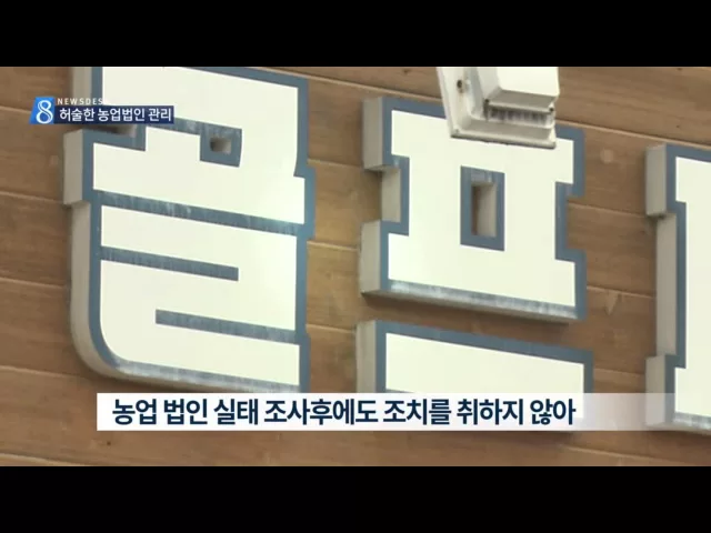 ◀ANC▶ 감사원이 최근 농업법인을 감사했는데, 관리실태가 허술한 것으로 드러났습니다. 과수원 땅에 골프연습장을 짓는가 하면, 문제 법인 관리도 제대로 안되고 있는 것으로 나타났습니다. 한태연 기자가 보도합니다. ◀END▶ ◀VCR▶ 경북의 한 농촌에 있는 실외 골프연습장, 이곳은 원래 과수원 땅이지만 A농업법인...