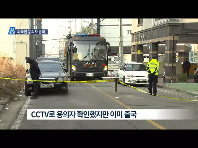 ◀ANC▶ 지난 16일 칠곡에서 발생한 20대 회사원 피살사건의 용의자로 지목된 태국인 남성이 사건 직후 고국으로 달아난 것으로 확인됐습니다. 수사의 난항이 우려됩니다. 한태연 기자가 보도합니다. ◀END▶ ◀VCR▶ 지난 16일 새벽 칠곡 석적읍에서 발생한 27살 최모 씨의 피살사건을 수사하고 있는 칠곡경찰서는 유력...
