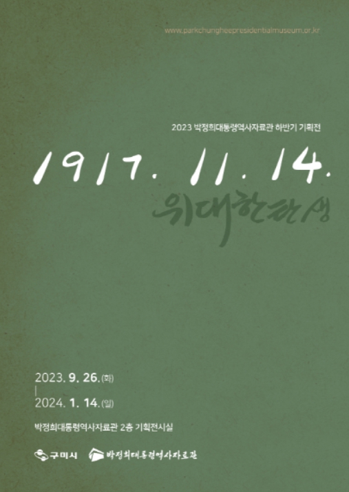 사진 박정희대통령역사자료관박정희 전 대통령 106돌을 맞아 박정희대통령역사자료관 기획전시실에서 기획전이 열리고 있습니다.2024년 1월 14일까지 열리는 기획전 '1917.11.14'는 박정희 전 대통령의 출생 배경과 생일 기념 일화 등을 살펴보고, 서거 이후 받은 마지막 생일 선물 등을 포함한 유품 27건을 공개합니다.전...