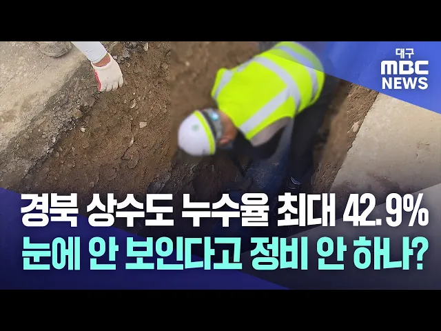 한 해 평균 수돗물 6천 5백억 원어치 땅으로 새고 있어···경북 누수율, 전국 평균 두 배 이상상수도관이 오래되면서 전국적으로 수돗물 10ℓ를 공급하면 1ℓ 이상 땅으로 새고 있습니다.한 해 평균 6천 5백억 원의 수돗물이 쓰지도 못한 채 버려지고 있는 건데요. 경북은 누수율이 전국 평균의 두 배가 넘고 농어촌은 40%에 ...
