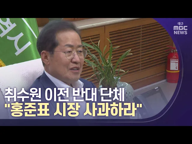 ◀앵커▶'대구의 상수원을 어디로 할 것인가?' 요즘 지역에서 가장 논란이 되는 사안이죠,홍준표 대구시장은 취수원 이전 협상에서 구미시를 배제하고 안동을 선택했습니다.또 구미 공단 폐수 문제를 감시하겠다며 연일 날을 세우고 있습니다.대구 취수원 구미 이전을 반대하는 단체는 홍 시장의 사과를 촉구하고 나섰는데요,...