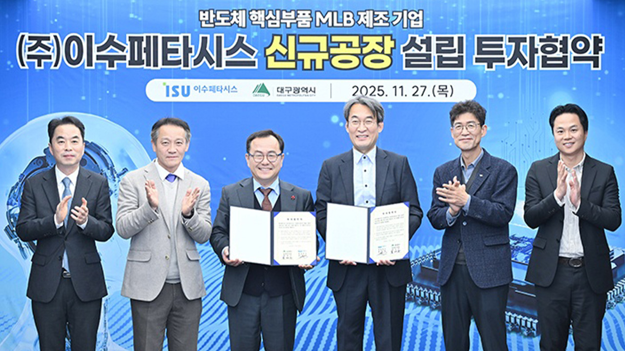 지역 반도체 분야 기업인 이수페타시스가 5백억 원대 규모의 신규 투자에 나섰습니다.대구시는 11월 27일 시청 산격 청사에서 이수페타시스와 503억 원 규모의 투자 협약을 체결했습니다.협약에 따라 이수페타시스는 대구 달성 2차 산업단지에 고성능 반도체 기능을 극대화하는 핵심 부품인 고다층 인쇄회로기판 생산을 위...
