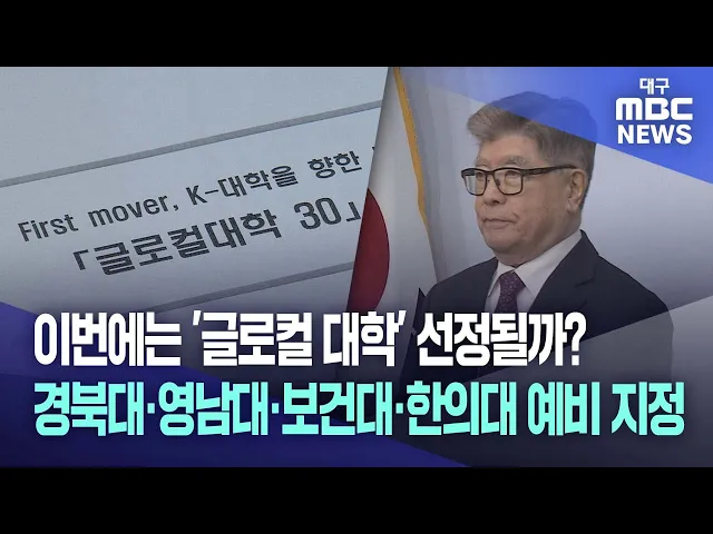 경북대와 대구보건대, 영남대-금오공대, 대구한의대가 교육부의 글로컬 대학 재정 지원 사업 공모에서 예비 지정됐습니다2023년 예비 지정에 통과했지만 본지정에 실패한 한동대는 예비 지정 자격을 유지했습니다.예비 지정 대학에 대해 오는 7월쯤 심사를 거친 뒤 8월 말 최종 글로컬 대학을 선정합니다.글로컬 대학 30 프...