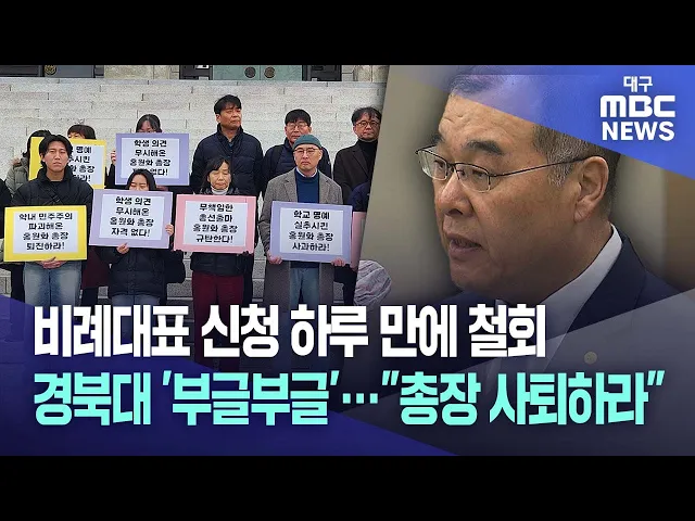 홍원화 경북대 총장, 비례대표 공천 신청했다가 하루 만에 철회···학내 구성원 "모욕적" "참담" "개탄스럽다"경북대 홍원화 총장이 4월 총선에 비례대표로 후보자 공천을 신청했다가 하루 만에 출마 의사를 철회했습니다.학내 구성원들 사이에서 '모욕적이다.' '참담하다.' '개탄스럽다.' 같은 격한 반응이 터져 나왔습니다...