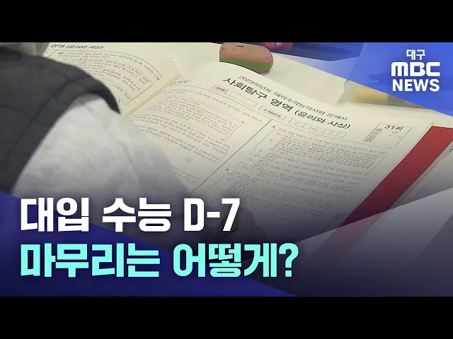 2024학년도 대학수학능력시험이 어느덧 일주일 앞으로 다가왔습니다.시험을 앞둔 수험생과 가족 모두 조급해지고 신경 많이 쓰일 시기입니다.남은 기간 어떻게 준비하면 좋을지 알아봤습니다.책과 문제집 넘기는 소리만 들리는 고3 교실취재진은 수능을 앞둔 대구 수성구의 대구여자고등학교 3학년 교실을 찾았습니다.교실...