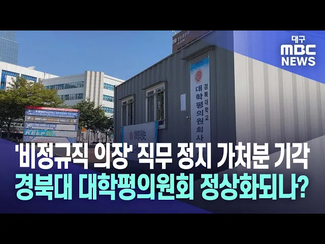 ◀앵커▶경북대학교 대학평의원회가 파행을 겪고 있다는 소식 전해드렸었는데요. 비정규직 교수가 처음 의장에 선출되고 난 뒤 소송전이 벌어지면서 지난 8월부터 평의회가 사실상 마비됐는데요. 그런데, 의장 직무를 정지해 달라고 낸 가처분 신청이 기각됐습니다.갈등 끝에 경북대 평의회가 제 기능을 되찾을 수 있을지 주...