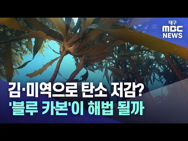 ◀앵커▶'블루 카본' 들어보셨습니까?해양 생태계, 즉 바다가 흡수해 저장하는 탄소를 말하는데요.바다에서 나는 김, 미역 같은 해조류가 이 블루 카본 흡수원으로서 크게 주목받고 있습니다.육상 식물만큼 이산화탄소를 흡수하고 산소를 발생시키는 역할을 한다는 겁니다.국제포럼 참석차 대구를 찾은 세계적인 기후학자, 카...