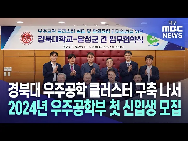 ◀앵커▶'한국판 NASA'라고도 불리죠.'우주항공청'을 설립하기 위한 특별법 제정이 국회에서 추진되고 있는 가운데 대구에서 미래 우주 분야를 선도하기 위한 움직임을 보이고 있습니다. 경북대가 달성군과 손잡고 우주공학 클러스터 구축에 나섰습니다.경북대는 우주공학부를 신설해 전문 인력 양성과 우주 인프라 센터를 구...