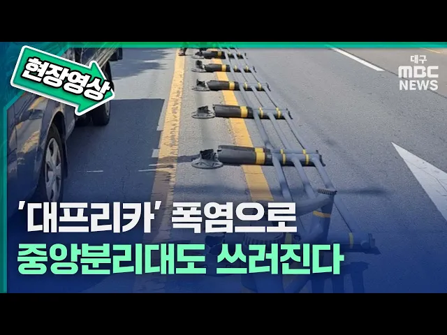 찜통더위가 기승을 부리는 가운데 대구에서 도로 중앙분리대 격인 '무단횡단 금지시설'이 녹아내리는 일이 잇따르고 있습니다.대구 수성구청에 따르면 8월 3일 오후 2시쯤 대구 수성구 파동행정복지센터 앞에 설치된 도로 40여 미터 구간의 중앙분리대가 쓰러졌습니다.이 사고로 수성구에서 투입한 작업자들이 뜨거운 햇볕...
