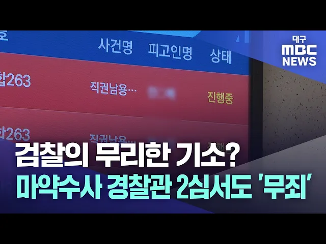 ◀앵커▶마약 수사를 하던 경찰 5명이 피고인으로 법정에 섰는데, 모두 무죄를 선고받았습니다.검찰이, 불법적으로 마약 사범을 검거하고 폭력을 행사했다며 기소했는데, 법원은 1심에 이어 항소심에서도 검찰 주장을 받아들이지 않았습니다.애초 검찰이 무리한 기소를 했다는 지적을 받습니다.보도에 박재형 기자입니다.◀기...