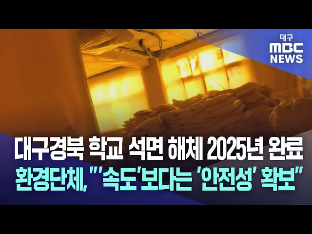 ◀앵커▶2023년 여름방학에 대구·경북 학교 70여곳에서 1급 발암물질인 석면 해체 공사를 할 예정입니다. 이 추세라면 당초 목표보다 2년 빠른 2025년쯤 학교에서 석면이 아예 없어질 전망입니다.문제는 석면 해체가 엉터리로 이뤄지면 석면 위험에 노출될 가능성은 더 커진다는 점인데요,최근 들어 '속도'보다 '안전성'을 강...