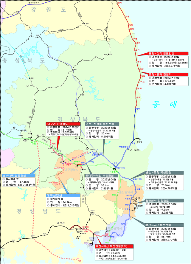 대구-경북 40분대 생활권? 대구권 광역철도·동해선 철도 2024년 말 개통