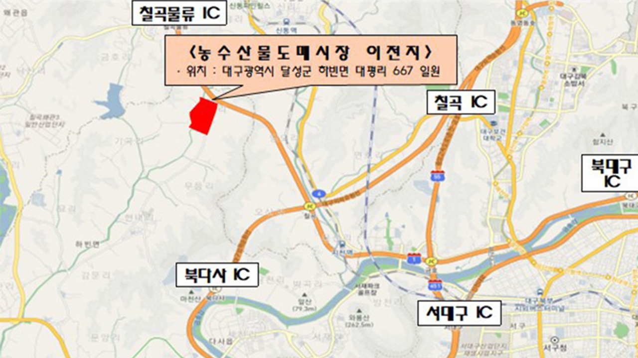 대구 농수산물도매시장 이전 사업이 기획재정부의 예비타당성조사를 통과했습니다.이에 따라 대구시는 국비 1,004억 원을 포함해 4,460억 원을 들여 북구 매천동 농수산물도매시장을 2032년까지 달성군 하빈면으로 옮겨 27만 8,000여㎡ 규모로 건립할 계획입니다.달성군에 새로 들어설 도매시장에는 온라인 거래소, 전자 송...