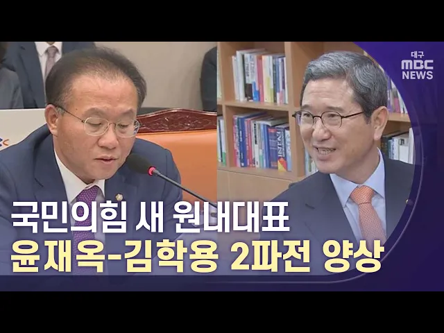 ◀앵커▶국민의힘 새 원내대표에 대구·경북 출신이 나올지 관심이 집중되고 있습니다.대구·경북 출신의 3선 윤재옥 의원과 수도권 출신의 4선 김학용 의원 간 2파전으로 압축되고 있습니다.이번에 선출되는 원내대표는 여소야대 국면에서 윤석열 정부를 뒷받침하고 내년 총선을 승리로 이끌어야하는 막중한 책임이 지고 있는...