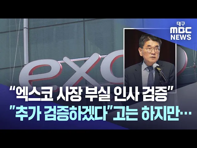 ◀앵커▶대구문화방송이 단독 보도한 엑스코 사장 내정자의 감사원 감사 적발 논란과 관련해 대구시와 엑스코가 추가 검증에 나섰습니다.엑스코 임원추천위원회는 이번 사안을 사전에 파악하지도 못해 인사 검증 시스템에 심각한 허점이 드러났다는 비판이 일고 있는데요.상황이 이런데도 대구시는 인사청문회를 실시하지 않...