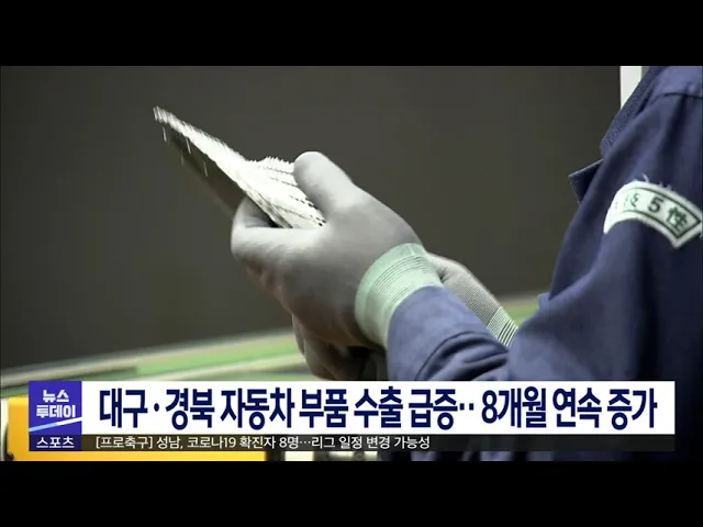 대구·경북 지역 자동차 부품 수출이 증가세를 보이고 있습니다. 대구세관에 따르면 지난달 대구·경북지역 자동차 부품 수출액은 12억 6천만 달러로 1년 전보다 55.7% 증가했습니다. 수입은 1년 전보다 26% 증가한 1억 3천만 달러로, 무역 수지는 11억 3천만 달러 흑자를 기록했습니다. 자동차 부품 수출은 지난해 11월 이후...