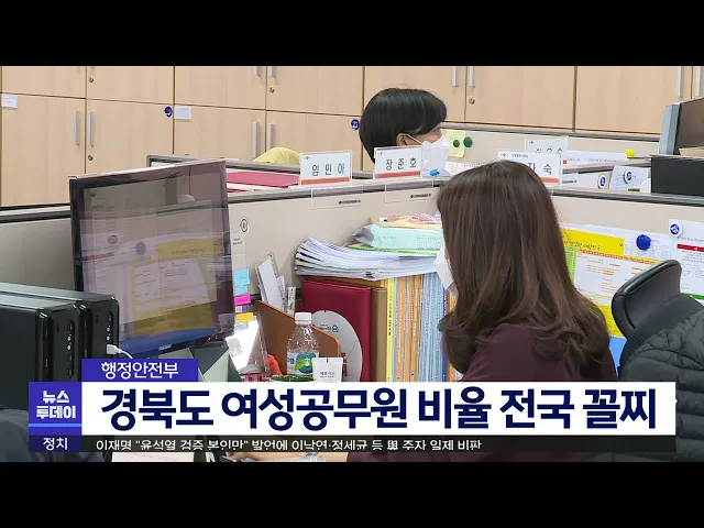 경상북도의 여성 공무원 비율이 전국 최하위로 나타났습니다.행정안전부의 '지방자치단체 여성 공무원 인사통계'에 따르면 지난해 말 기준 경북지역 여성 공무원 비율은 40.1%로 전국 17개 광역시·도 가운데 꼴찌를 기록했습니다.지방 5급 이상 여성 관리자 비율도 경상북도는 12.7%로 충남에 이어 전국 시·도 가운데 두 번...