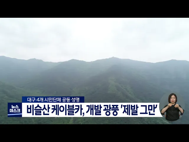 대구경실련, 대구참여연대, 대구환경운동연합, 영남 자연생태보존회는 공동 성명을 내고 지역 경제 활성화 명분을 내걸고 추진 중인 비슬산 케이블카 사업을 즉각 중단하라고 촉구했습니다.이들 단체는 케이블카 설치로 인해 천연기념물 제435호 암괴류 등 자연환경이 훼손되고, 이용객 수 같은 경제성 분석이 부실해 적자...
