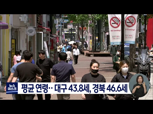 행정안전부가 발표한 '주민등록 연령별 인구 통계'를 보면 올해 6월 말 기준 대구의 주민등록 인구 평균 연령은 43.8살로 조사됐습니다.남자는 42.2살, 여자는 45,2살로 나타났습니다. 이는 전국 평균 연령인 43.4살보다 높고, 8개 대도시 가운데 부산에 이어 두 번째이며 2008년과 비교해 7살이 많았습니다.경북의 주민등...