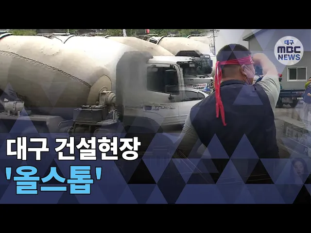 ◀앵커▶ 아파트를 비롯한 대구 지역 건설 현장의 공사가 일주일 넘게 중단되고 있습니다.레미콘 운송노조가 운송 단가 인상을 요구하며 파업에 들어가 레미콘 공급을 중단했기 때문인데요.파업이 해결 기미를 보이지 않고 있어 피해가 커지고 있습니다.박재형 기자가 취재했습니다. ◀기자▶대구 지역 아파트 건설 현장 곳곳이...