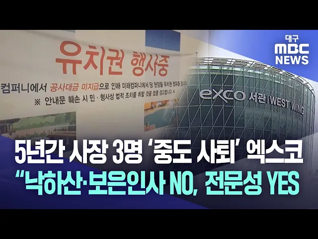 ◀앵커▶지난 5년간 사장 3명이 임기를 채우지 못하고 중도 사퇴한 대구시 출자 기관이 있습니다.바로 엑스코인데요, 잦은 CEO 교체에다 낙하산·보은 인사 및 전문성 부족 논란까지 겹쳐 잡음이 끊이지 않았습니다. 최근 사장직을 내려놓은 표철수 전 사장의 후임을 곧 선임하는데, 경영의 전문성을 살릴 수 있는 인사가 중용...