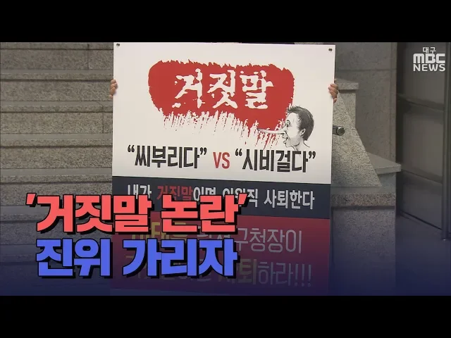 ◀ANC▶이태훈 대구 달서구청장이 한 의회 비하 발언, 거짓말 논란이 말싸움, 감정싸움을 넘어 정치 쟁점으로 번지고 있습니다.문제 제기한 구의원은 양측의 녹취록 원본을 제3의 기관에서 공증받아 진실을 밝히자며의원직을 걸고 1인 시위에 나섰습니다.박재형 기자가 취재했습니다. ◀END▶ ◀VCR▶문제의 발단은 이...