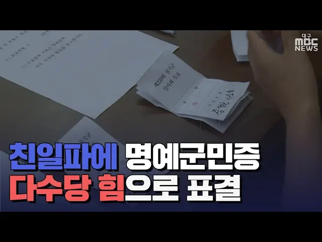 ◀ANC▶ 친일 행적이 있는 백선엽 장군이 결국 칠곡군 명예군민증을 받게 됐습니다. 군의원 한 명의 끈질긴 문제 제기로 친일 행적이냐, 전쟁 영웅이냐를 둘러싸고 논란이 컸습니다만, 다수당인 한국당의 의지대로 명예군민증 수여가 결정됐습니다. 박재형 기자가 취재했습니다. ◀END▶ ◀VCR▶ 칠곡군의회가 친일 행...