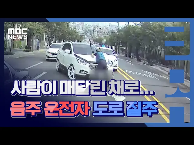 ◀ANC▶ 지난 주말 대구 도심에서는 20대 SUV 운전자가 60대 택시기사를 차에 매단채 도로를 질주하는아찔한 사건이 있었습니다. SUV 운전자는 택시를 들이받고 달아나다 택시기사가 항의하러 오자 이런 짓을 한 건데, 경찰이 잡고 보니 만취 상태였습니다. 당시 블랙박스 영상을 박재형 기자가 단독 입수했습니다. ◀EN...