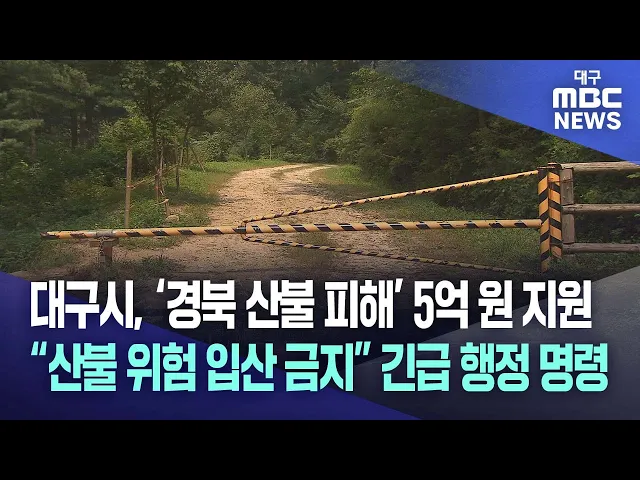 ◀앵커▶대구시가 경북 대형 산불과 관련해 5억 원을 지원하고 의료 인력을 파견하겠다고 발표했습니다.한편, 메마른 날씨와 강풍 등으로 산불 발생 위기가 커졌다며 입산 금지를 주요 내용으로 하는 긴급 행정 명령도 내렸습니다.박재형 기자가 보도합니다. ◀기자▶대구시가 최악의 산불 피해를 입은 경북 복구에 필요한 자원...
