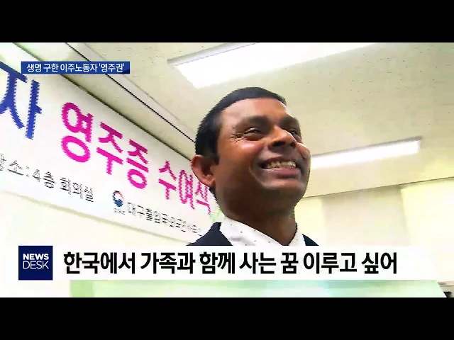 ◀ANC▶ 화재 현장에 뛰어들어 90대 할머니를 구한 스리랑카 이주 노동자가 한국 영주권을 받았습니다. 우리나라 국민 생명을 구한 일로 외국인이 영주권을 받기는 이번이 처음입니다. 보도에 박재형 기자입니다. ◀END▶ ◀VCR▶ 올해 39살의 니말 씨. 2011년 아버지와 아내, 딸과 아들을 고향 스리랑카에 남겨 두고 ...