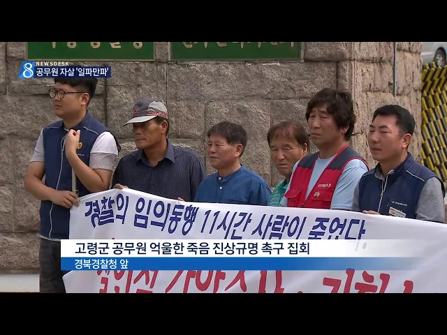 경찰 조사를 받고 나오던 고령군청 공무원이 스스로 목숨을 끊은 사건과 관련해 한 공무원을 죽음으로 내몬 강압 수사 논란과 함께 고령에서는 이번 경찰의 수사가 내년 지방선거와 관련됐다는 의혹까지 일파만파로 확산되고 있지 뭡니까요? 전국공무원노조 대구경북본부 조창현 본부장, "공권력을 이용해 수사한다는 명목 ...