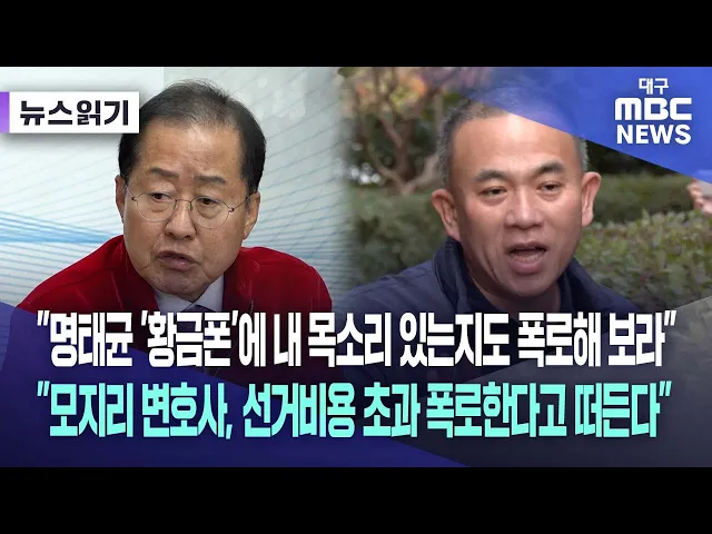 홍준표 대구시장은 선거 브로커 명태균 씨가 이른바 '황금폰'에 저장된 전·현직 의원만 140여 명이라고 주장한 것과 관련해 2월 14일 자신의 SNS에서 "거기에 내 목소리가 저장돼 있는지도 폭로해 보라"고 불편한 심기를 내비쳤습니다.홍준표 시장은 경남도지사 선거 당시 '선거비용 초과' 논란에 대해서는 "2014년 6월 경...