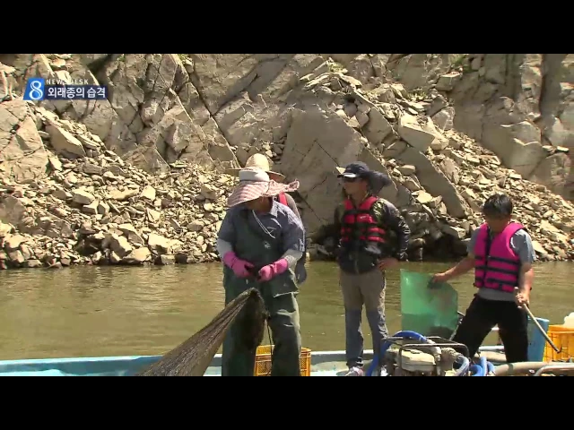 ◀ANC▶ 전국에서 뉴트리아, 배스, 가시박 등 외래종과의 전쟁을 벌이고 있습니다만, 늑장 행정 때문에 생태계 파괴, 예산·행정력 낭비가 극심한데요. 최근 집중보도하고 있는 '큰금계국'도 비슷한 행태를 보이고 있습니다. 박재형 기자가 취재했습니다. ◀END▶ ◀VCR▶ 1970년대 도입돼 국내 하천에 정착한 배스, 북미...