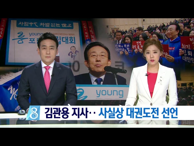 ◀ANC▶ 출마선언만 하지 않았을 뿐, 사실상 대권행보를 보이고 있는 김관용 경북도지사의 지지 모임인 용포럼이 오늘 출범했습니다. 여] 마땅한 대선후보를 찾지 못하고 있는 자유한국당의 국회의원과 단체장들이 대거 참석해 대선출정식을 방불케 했습니다. 보도에 박재형 기자입니다. ◀END▶ ◀VCR▶ 대권 출마 선언...