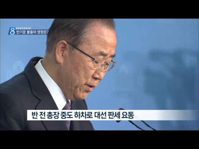 ◀ANC▶ 반기문 전 유엔 사무총장이 대선 불출마를 전격 선언하면서 대선 판세 변화가 불가피하게 됐습니다. 중도·보수 성향의 반 전 총장이 낙마하면서 지역의 표심이 어디로 옮겨갈지 관심이 쏠리고 있습니다. 권윤수 기자가 보도합니다. ◀END▶ ◀VCR▶ 범여권의 유력한 대선후보로 꼽히던 반기문 전 총장이 불출마...