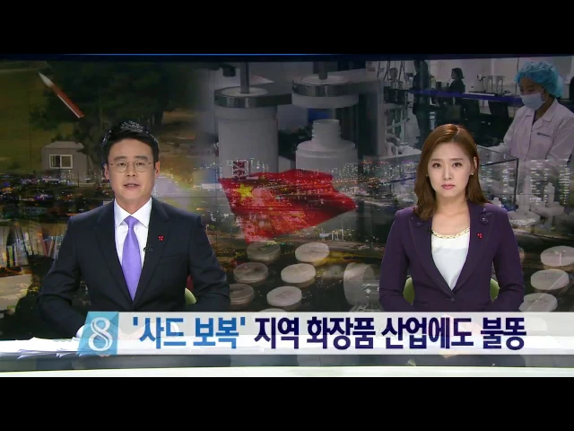 ◀ANC▶ 남] 사드 배치 논란이 엉뚱한 곳으로 번지고 있습니다. 중국이 한국의 사드배치를 두고 잇달아 보복성 조치를 취하고 있는 가운데 최근에는 한국산 화장품이 무더기로 수입이 불허됐습니다. 여] 지역 화장품 업계에도 당장 불똥이 튀고 있는데요. 특히, 수출 위주의 경산 화장품 산업 지구에도 큰 영향이 미치지 ...