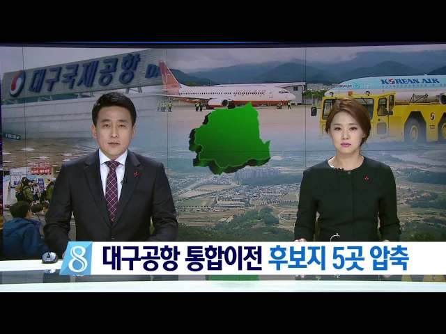 ◀ANC▶ 대구공항이 옮겨갈 예비 이전후보지 선정 용역결과가 나왔습니다. 유치전을 벌여온 군위와 의성, 그리고 성주, 고령, 달성군까지 모두 5곳으로 압축됐습니다. 여] 이미 국방부가 해당지역에 통보를 했고 시·군과 협의를 거쳐 예비이전후보지를 최종 선정할 계획입니다. 보도에 박재형 기자입니다. ◀END▶ ◀VC...